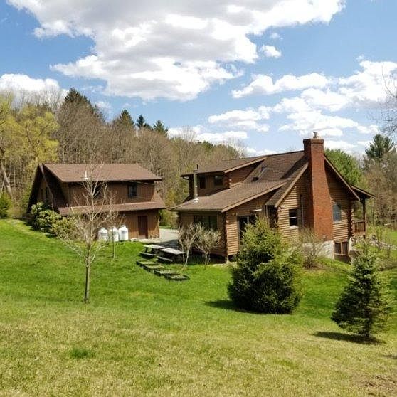 COUNTRY UPSTATE LIVING with modern amenities! 2 Bedroom, 2 Bath Beaver Mountain Log Sided Home on 40.87 mostly wooded Acres (2 Lots). When you imagine a Country Log Home, you picture this one. Living Room with Stone Fireplace w/efficient wood burning insert, Kitchen & Dining area, first floor bedroom and bath, Florida Room with a separate wood stove. The spacious Loft area features a second bedroom and a second full bath. But, that's not all! Detached, over-sized 2 vehicle heated garage with fully finished second story complete with a third bedroom, full bath, kitchenette and sitting area. Call it your private getaway to escape the Hallmark Channel or use it as your guest's home. A separate large outbuilding away from the home can house your tractor, ATV or another vehicle. Fenced in area for your dogs or livestock. Large Pond and seasonal stream complete your Country Dream Home. Close to ST-17/I-86.