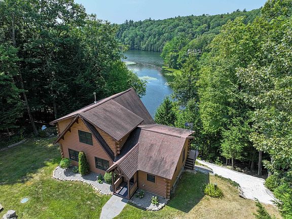 52' of lakefront is all yours to use every day of the year! Fern Lake is one of the most peaceful and serene lakes around. Restricted to 5mph, it's an ideal lake for paddling, casting a line or taking a gentle swim during the summer. In the winter, join the fun of ice skating and ice fishing and watch the sun glisten on the frozen water! A unique log home sits well above the lake offering water views, reflective sunsets and natural shade thanks to the mature trees. A patio, a firepit and a newly upgraded deck along with stairs to the lake and a waterfront dock gives you all the best outdoor options. Inside a totally renovated kitchen (appliances, countertops, cabinets) and an open floor plan allow you to socialize with your guests and keep an eye on what's happening! There are two bedrooms and a renovated bathroom/laundry on the main level and a primary suite with another renovated bathroom (with electric radiant heat!) on the second floor PLUS a sweet office nook overlooking the living room area. In the living room ample shelving flanks the gas fireplace and the doors and windows to the deck allow you to enjoy the beauty of lakeside living. Within the basement area, you could add a 4th bedroom (septic will allow) and/or rec room adjacent to the doors to the hot tub! So many smart and tasteful upgrades like an EV charger in the detached garage, new light fixtures, heat pumps, generator, doors, security, blinds, deck, cable railings. Please - no drive bys, make an appt.