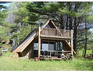 1- A-Frame w/ 1/2 bath, wood burning stove and loft overlooking the pond. Also 2 1/2 car garage w/ an apartment above, which contains a full bath, kitchenet. Both come with all furnishings IE: Fold out couch, refrigerators and extras. Neighborhood Description THERE ARE ONLY THREE OTHER HOUSE ON THIS STREET, WHICH IS VERY QUIET AND SECLUDED.