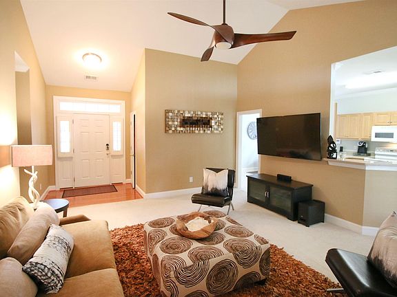 - Living Room: Fireplace, Ceiling-Vaulted, Ceilings-High (over 9 Ft), Ceiling Fan