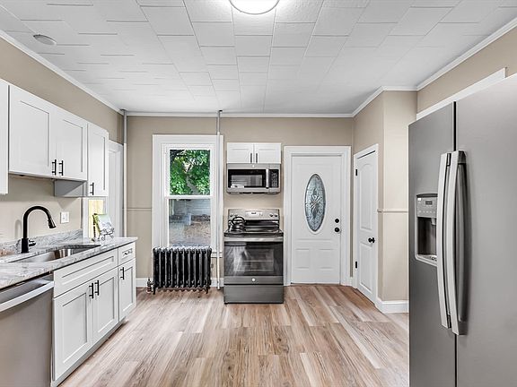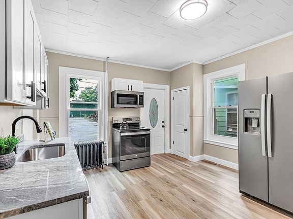 Come see this beautifully renovated 5 BR, 2 bath home in Holyoke. The kitchen has been fully remodeled with white shaker cabinets, stunning stone countertops, vinyl plank floors, and new stainless steel appliances. Step into the large, bright living room with a beadboard ceiling and vinyl plank floors. The fully renovated first floor bathroom is all brand new with a sleek bathtub and shower surround, new vanity, and modern fixtures. Head up to the 2nd and 3rd floors to find 5 sunny bedrooms with brand new carpets and a second fully renovated bathroom. Outside you can relax on the cozy covered front porch or bring your vision and transform the backyard in to your summer oasis!