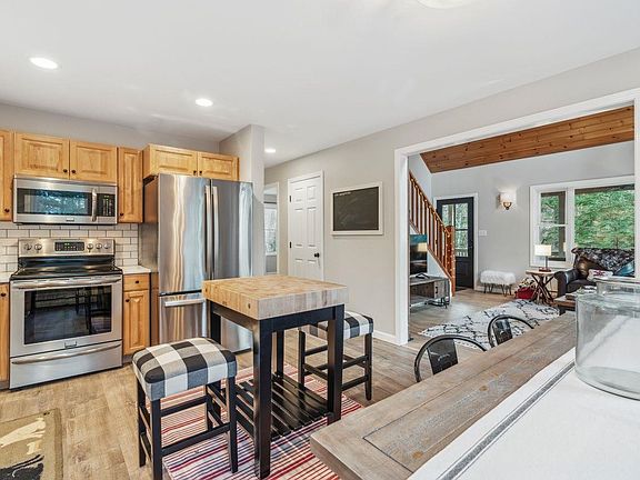 Welcome to a secluded haven in the heart of Campton, NH. This single-family home boasts 3 bedrooms and 2.5 bathrooms, providing a perfect blend of comfort and style. As you venture inside, the residence exudes warmth and sophistication. The recently updated kitchen features granite counters, a new backsplash, and gleaming floors, creating a contemporary culinary haven. Imagine entertaining guests in the spacious living areas, highlighted by fresh paint and new doors that open to a covered farmers' porch, perfect for enjoying the serene outdoors. Privacy is paramount, and this property delivers a newer rear patio, and an outdoor fire pit area for cozy gatherings under the stars while you listen to the babbling brook. The addition of a mini-split with a heat pump ensures year-round comfort. Beyond the home's impeccable interiors, the location is a major draw. Nestled just two minutes from an elementary school and a short 5-minute drive to Interstate 93, this residence is both conveniently located and a peaceful retreat. Enjoy quick access to Owl's Nest, which is home to the only Nicklaus Design Golf course in NH, and nearby skiing adventures on the mountain of your choice. Get lost in the White Mountains and hike to your heart's content. Escape the hustle and bustle while still being less than two hours from Boston, making this property the perfect blend of tranquility and accessibility. This turnkey gem is ready for you to move in and start creating lasting memories.