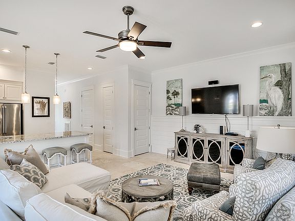 This is a special luxury townhome on the Gulf side of 30A featuring 5 bedrooms, a carriage house, a courtyard, two car garage, elevator, balconies off of every bedroom, and all just a few steps from the shops and restaurants at the Hub. Additionally the home was built using Insulated Concrete Form construction which means it is quiet, strong, and efficient. This end-unit welcomes you in with a spacious kitchen, open living area, and a dining room on the first floor. The second and third floors feature a large master and guest bedroom each with ensuite bathrooms. Every bedroom also has access to its own porch. The courtyard is an ideal place to enjoy a meal or wind down from the day. The carriage home kitchen has a full size oven/stove and is perfect as guest quarters or a separate rental. 2021-02-15