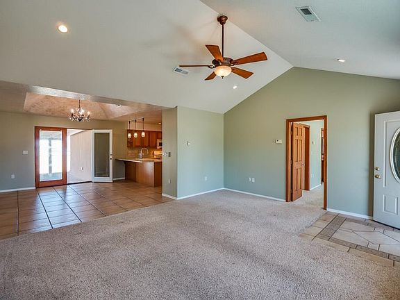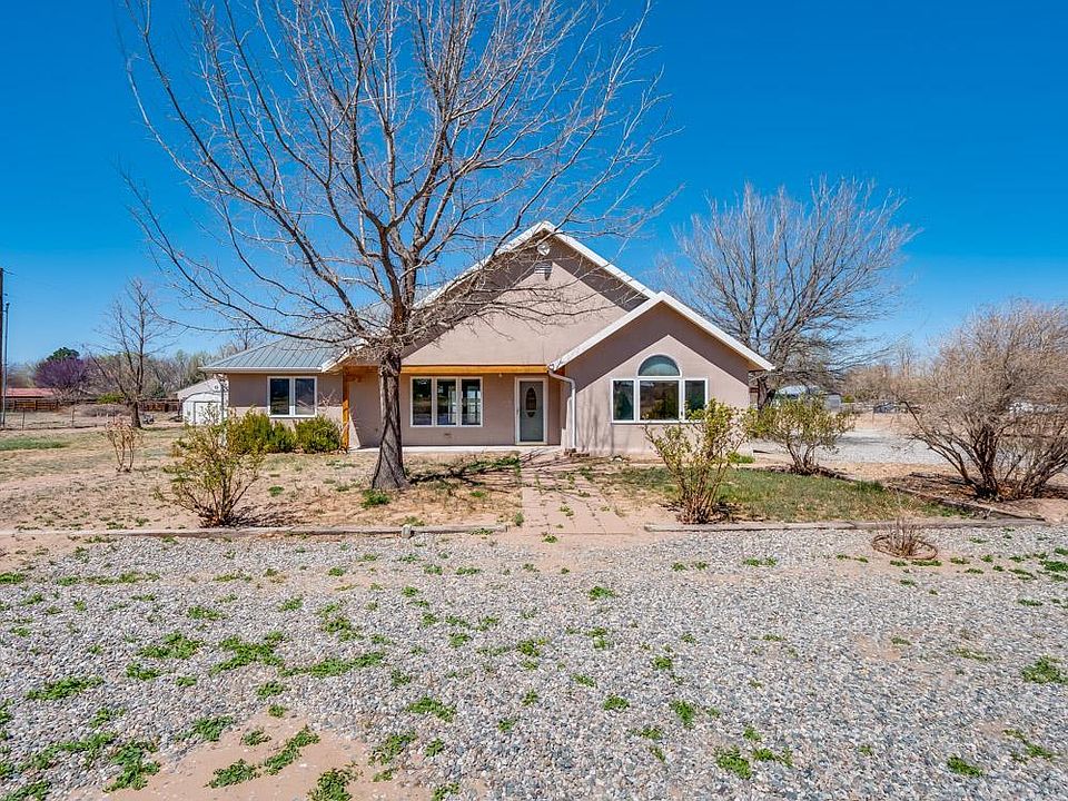 Beautiful single story home sitting on an Acre lot in La Mesilla! With open skies and room to grow there is no limit on making this land your dream oasis. Walk right into the large, bright Living Room with vaulted ceilings and carpet. Off the Living Room is is the Primary En-Suite with fabulous windows looking to the mountain views, vaulted ceilings, and a great walk-in closet. The bathroom has a double sink vanity, tile flooring and a deep jetted soaking tub with tile surround. On the other side of the Living Room there's two more nice sized guest bedrooms and a full guest bath. The Dining Room is centered with a Deep tray ceiling with chandelier, tile flooring, and glass doors leading to the oversized covered patio and backyard. Connected is the large Kitchen with bar seating peninsula with sink and pendant lights, wood cabinets, tile flooring and large pantry closet. From there you have a great sized Laundry Room that leads to the Mudroom with cabinets and shelves and a back entrance leading to the two car carport. There's a long hallway with cabinets with access to the back patio and leading to a third huge guest bedroom with walk-in closet. There's a pull down ladder that leads to the attic space for storage. Two large sheds in the back, fruit trees, and fenced in with two entry points to the home. Not far from all your shopping and restaurant needs. The perfect home to build your very own farm, book your tour today and envision the endless possibilities of tomorrow!