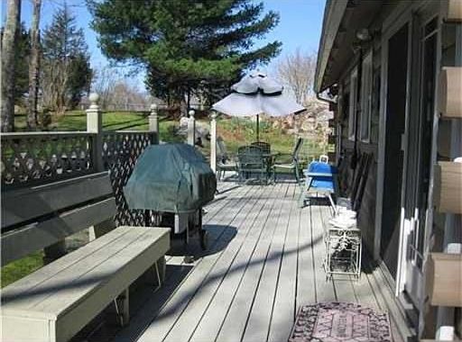 Spectacular log cabin home! Large fireplaced living rm. HIckory floors and kitchen cabinets. Master bed on 1st floor with bath, 2 Car garage, small pony barn, large deck and porch overlooking beautiful landscape. 60,000 sq ft lot!
