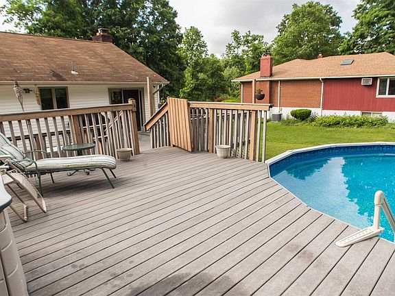 Welcome to your bright & sunny ranch home with hardwood floors. Walk-in to the living room with a large bay window and stone fireplace. Sliders in the dining room ljavascript:contMLS(document.Mainform);eads to 1000 sq/ft multi-level trec deck, perfect for entertaining! Anderson windows, vinyl sided, 200 amp electric, and central vac. Reverse osmosis system, whole house water filter and town water. Double insulation in attic helps to reduce energy bills. Finished basement perfect for playroom or man cave! Flat level .53 acres which includes a 24 ft round above ground pool. This home is a must see.