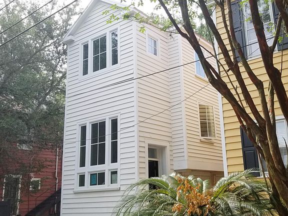 Charming, modern new construction house with 2 bedrooms plus 2.5 baths and off-street parking on tree-lined street surrounded by historic homes and centrally located for easy walking access to King Street, CofC, MUSC, Ashley Hall and Roper hospitals. Walk into foyer area which is open to the main home. To the right of the foyer, tucked behind double-doors are storage space for bikes as well as the laundry area. Oak hardwood stairs lead to open and modern living and kitchen. Exceptional details make this a standout home notice the shiplap walls, water-based finish oak floors, tile accents, significant number of windows for natural light. Kitchen features quartz counters, stainless appliances and eating space for bistro style table and chairs in a perfect nook with views to the back yard. Modern-styled white cabinetry and ample counter space make this a very functional, yet efficient design. Also, on main floor is a powder room tucked under the stairs with tasteful penny tile wall accent. Upstairs, the master bedroom has a closet plus attractive built-in cabinet-style closet space flanking the bed wall creating plenty of storage and hanging options. Master bathroom has dual sink vanity in quartz, custom tiled shower and tiled accent walls in a modern spin on white subway style. The second room can be used as guest bedroom or office with private in-suite bathroom also with custom tiled shower using marble accents mixed with geometric details. There is a closet located just outside this room giving options for bedroom use or as a linen closet. Off-street parking, small fenced back yard area and extra storage space under house complete the home. Perfect for a primary residence, rental investment or pied-a-tier second home where you could truly lock and leave.