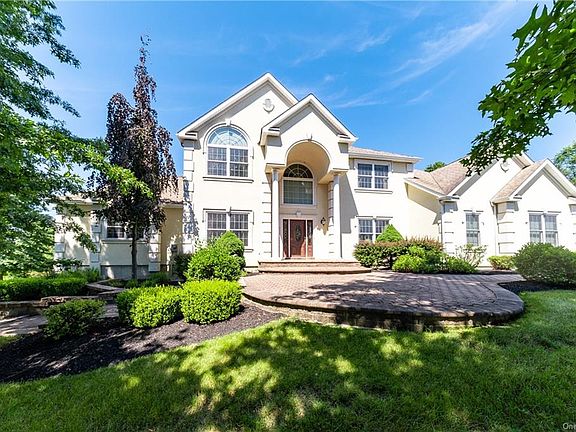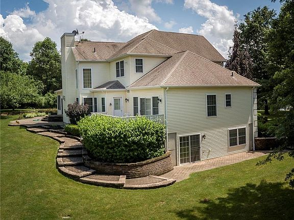 Grand, stately, 3559 sq. ft. custom Camelot colonial model featuring 9 rooms, 4 bedrooms, 3 full baths, 3/4 impressive fireplaces, loaded with upgrades & amenities, perched on 2.6 glorious, mountain view acres, at the end an upscale culdesac, Valley View Estates. Dramatic 2 story great room with fireplace to relax or entertain, 2 story entry with balcony overlook. Designer kitchen with maple cabinets, granite counters, nook that opens to year round sun room with gas fireplace. Spacious master bedroom, huge master bath with whirlpool and large tiled shower, private commode, walk in closet with double side fireplace and office. Elegant dining & living rooms & full bath completes the expansive 1st floor living area. 3 bedrooms, one with circletop window on 2nd level. Hardwood floors, central air & vac. Stucco exterior, Belgian block curbs,paver surround. HUGE walkout bsmt to expand.Wonderful privacy to enjoy nature & vistas yet close to Village & major shopping, bus & highways to commute.