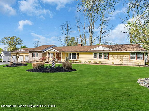 en suite bathroom. New gas fireplace, new roof, new heating, newly painted, new floors and carpets throughout. Large laundry room with double sinks. 3 car garage with work station and a large lot on a cul de sac . Close to shopping, Beaches, Monmouth Race track, Prkwy, Rt18 and the Old fort Monmouth.
