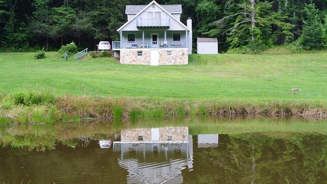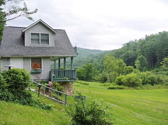 Come live the country life. Charming Home on 1.95 gorgeous acres with flat Pasture, pond and Anderson Creek frontage + a Mountain view. private and unrestricted, so bring your farm animals, grow a big garden or just enjoy nature. Already has fruit trees too. What more could you ask for? This cute home has 2 rooms currently being used as Bedrooms, and 1 bath on the main level plus a large master suite on the upper level that has a sitting area and it opens up to its own deck to enjoy the pasture & mountain views. Rock wood burning FP & hardwood floors in the living room, dining area and kitchen. Also has a big covered porch to enjoy outside living. Easy access off of a paved state maintained road, so bring your camper or RV. Also has a partial unfinished basement, and a storage shed/workshop. All this at an affordable price.