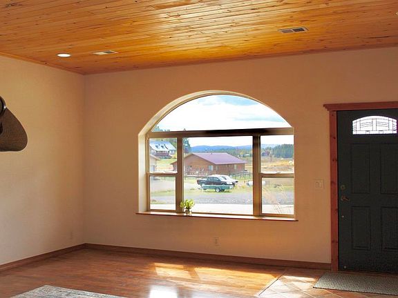 Huge 1400 sq ft workshop with RV Parking on the side. This single story Colorado mountain style home with a beautiful wrap around porch with beautiful views, pull up a rocker and enjoy. It is a perfect family home with plenty of room for kids or guests and a short walk to the park with walking trails into the national forest. This home is unique as it has a large living room and a nice separate family room giving everyone a bit of elbow room. The family room has a wood pellet stove that keeps the temperature just right, don't worry, we have forced air heat as well. The kitchen, is open and just off the dining area/ family room, has all wood cabinetry and has a beautiful laminate wood flooring throughout the house with tongue and a groove ceiling in the family room, kitchen & living room areas. Off of the kitchen is a bonus room that could be used as a craft room, an extra large pantry, or a true dining room. On either side of that area are two separate screened porches with one that connects to the wrap around porch that could be used for a number of things including a nice hot tub or sauna. This home is energy efficient with exterior walls that are 12 inches thick keeping you warm & cozy all winter long and cool in the summer. The one car attached garage is where you will find the laundry room. A nice large cement pad is at the entrance of the home which is nice to pull in after our dirt roads. In front of the large garage/workshop is a huge cement pad. Ideal for parking or the perfect basketball court. The separate 1400 sq foot garage can be used to park approx 6 cars,or just a massive workshop and it has an additional RV parking on the side and enormous cement pad. (This has huge value). There is enough room in this garage to keep all your summer and winter toys or perhaps build an apartment. This home is located on a cul- de-sac. The kids can ride their bikes while mom/dad walks the dog one block south to the park that backs to the National Forest where you can hike bike or snow shoe. This is such an awesome home, easy to lock and go or keep as your primary residence. Make sure this is on your list! You will be glad you did.