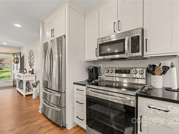 This is a fantastic opportunity for you to purchase one level, fully renovated home on the river. Located just outside of Canton, this home is easily accessed by paved, level roads. The main living area provides a fully renovated kitchen with open floor plan, 3 bedrooms and 2 full baths as well as laundry. You do have the ability to access the basement from the inside. Updates also include new laminate hardwood floors, new bathrooms, new plumbing and electrical, and new heat pump for both heat and air conditioning. Sellers have also installed new sheetrock throughout as well as interior doors and trim. Sit on your covered, front porch and listen to the river cascade by. The 7+ acres are cleared and open and provides long range mountain views. We would be honored for you to take a look at this amazing property!
