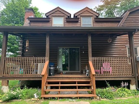 This beautiful cape style log home has been incredibly maintained, thoughtfully designed, loved and cherished. It is nestled in the woods on a quiet country road. Enjoy the tranquil environment right off of your back deck, a perfect spot for all of those summer picnics. You will be in awe of the stonewalls and the gorgeous views There is no better spot to relax and unwind. Many recent updates, to include... home was stained and new roof, gutters, Buderus boiler, oil tank, kitchen appliances, Anderson windows, quartz counters, bulkhead, flooring, screen doors and both bathroom remodels The unfinished basement has a work bench and plenty of space for storage and tools. This home truly has it all