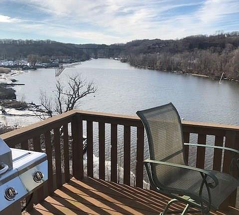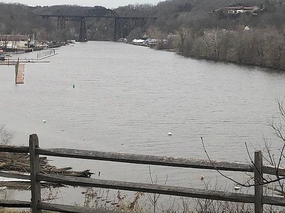 This is one of the most spectacular views built on a bend with excellent views in the middle of the Creek. spectacular views of the train bridge and the Port Ewen and Kingston bridge. walk to restaurants on Kingston's waterfront , shops boating, concerts, fireworks on your deck, Spectacular! this three level has 3/4 basement finished walks out to patio and view! the kitchen was remodeled and beautiful wood flooring, wool rug and fireplace in LR and I can guarantee the deck will be used continually. You will be hypnotized by the view! three BRs up one bath ,1/2 bath down.