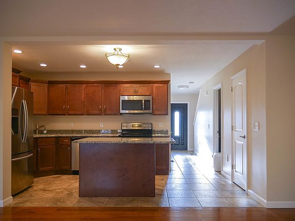 This property brings a modern touch to any renter. First floor offers a spacious and bright living and dining space; very open. Stunning kitchen includes beautiful new stainless steel 3-door-refrigerator with water and ice dispenser, dishwasher, electric stove and microwave all covered by owner's maintenance policy. Elegant granite counter-top followed by dark wood custom cabinets. Tile and hardwood flooring first floor. Modern light fixtures and recess lighting throughout. Wall-to-wall carpet on second floor. Each bedroom comes with a spacious closet space. Laundry hookups second floor. Private trek deck in the backyard. Comes with all new and efficient utilities; Gas heat(separate), on demand tank-less hot water heater(separate), central AC(separate), central vacuum, basement, off street parking and more. Book a showing today! Contact us to schedule a showing.