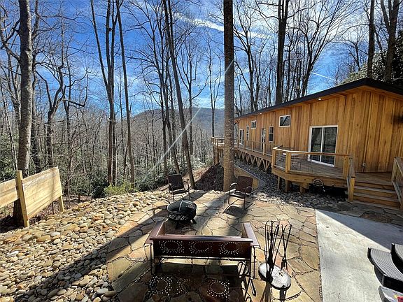 Owner is Licensed NC Realtor. Completely re-imagined 1993 Clayton Single wide on 1.51 acre. 1/1. 689 SF. . Perfect weekend getaway, STR or year round home. Beautiful views. All ext and int wood sourced from the property, locally milled, & kiln dried for this remodel. Vintage custom kitchen cabinetry. New stainless appliances. New heat pump to keep you comfortable year round. Bring the outside in with the wall of glass doors. Authentic mid-century fireplace for cozy times on the covered deck. All furnishings & art included except large carved owl, black wire patio furn & a few other small items .This labor of love was executed with an eye towards excellence & serious thought given to sustainability. I did this renovation with plans to keep it & furnished it to my taste with art and artifacts from my personal collection. High speed internet and excellent cell service. 25 mns to BlK Mtn or DT AVL. Peaceful, quiet and beautiful. ATT Highspeed internet. Excellent cell service with Verizon