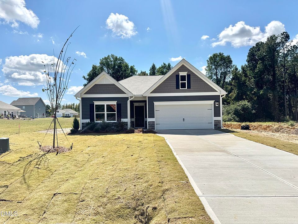 Smith Douglas Homes presents the Bradley C plan at Harrington Place. This stunning ranch-style home in the charming town of Broadway offers 1,679 square feet of stylish living space, featuring 3 bedrooms and 2 bathrooms. The open floor plan is perfect for both entertaining and relaxing, with a modern electric fireplace in the family room. The gourmet kitchen boasts granite countertops, upgraded cabinets, stainless steel appliances, and a large island. Luxury vinyl plank flooring flows throughout the main living areas, adding a touch of elegance. The spacious owner's suite is a private retreat, complete with a walk-in closet and a luxurious en-suite bath with double sinks and a walk-in shower. Two additional bedrooms offer flexibility for family, guests, or a home office. Enjoy outdoor living on the large, covered patio, perfect for gatherings or quiet relaxation. With a two-car garage and a 0.545-acre lot, this home offers plenty of space for storage and outdoor activities. Don't miss the chance to make this beautiful home in Harrington Place yours! Estimated completion October 2025.