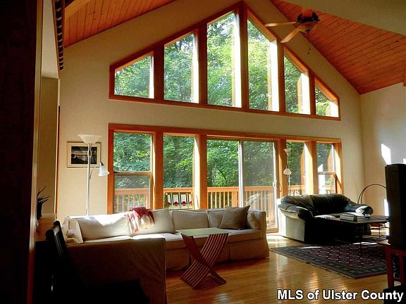 Inviting 3+ Bedroom Contemporary Minutes To Rosendale And Stone Ridge, 1.5 Hours To Nyc With Frequent Buses From Rosendale. Spacious 2nd Floor Bedrooms Both With Ensuite Baths & Third Bed/Bath On 1st Level. Great Room With Stunning Window Feature, Cathedral Ceiling & Jotul Woodstove. Modern Kitchen W Granite Island. Large Deck With Lush Views of Wooded Acres. Walk-Out Family Room On Lower Level W/Sliding Doors To Stone Patio Adds 390 Sf of Living Space. Walk To Women's Studio Workshop, Rail Trail & Trestle.