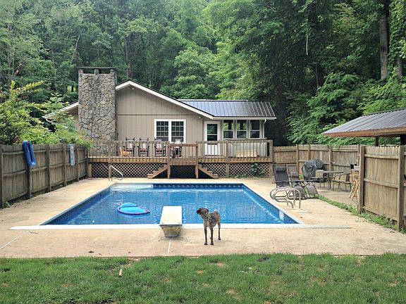 Great split-level home in wonderful neighborhood 5 minutes from Western Carolina University. 3 bedrooms, 1 bath upstairs, open living room, dining area and kitchen, large (unheated) sunroom off the dining area that heads out to the POOL! There are 2 ways to get the wrap-around deck that overlooks the 20'x40' in ground pool and tiki hut. Great home for entertaining. Downstairs: large room set up for game room/bar but could easily be a play area, theater room or home gym with a half bath and laundry area. The other half of the downstairs is a self sufficient apartment of about 500 sqft. The apartment has its own kitchenette, full bath including walk-in shower, huge jetted tub, and living area. Apartment has private entrance and can be closed off to the rest of the house. Yard is completely fenced in. Large lot has 2 separate (but can be joined) fenced in areas, 2 vehicle carport, and 12'x20' stickbuilt outbuilding that matches the home with 18' wide garage door, water and electricity. ***the listing contract with my agent expired, so we've taken the opportunity to offer the house for a much lower, no haggle price. We are not negotiable on this price, and if you bring a buyers agent you will be responsible for their compensation***