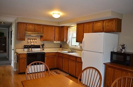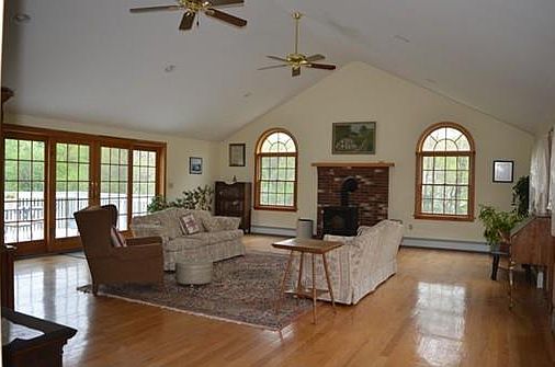 You won't want to miss this immaculate, sprawling 3 bedroom 1.5 bathroom cape with an amazing great room over the two car garage! The eat-in kitchen has gleaming wood floors and beautiful wood wainscoting. The family room has an oversized window for extra light and a woodstove with a brick mantle. The great room has gorgeous wood floors, a woodstove with brick mantle, and French doors with double sidelights that lead out to the deck and large, level backyard. This home offers three large bright bedrooms, a first office, and first floor laundry. The finished, walk-out basement provides extra living space and has a woodstove. There is a shed in the back yard for extra storage. This house is beautifully landscaped with mature flowering trees in the yard and a classic stone wall lining the front of the property. There is a new roof on the main house and title 5 passed and is in-hand!!