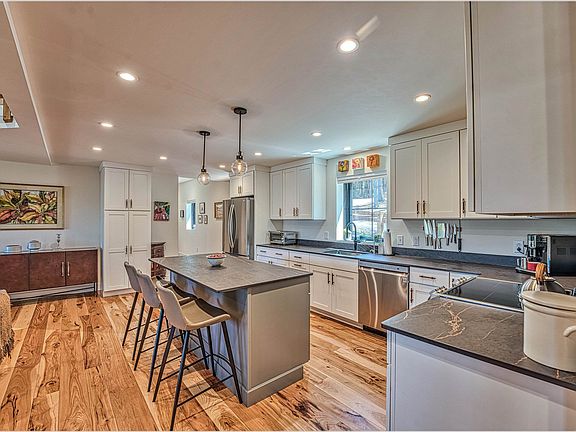 Perfection Realized- While true perfection may be elusive, this extraordinary home comes remarkably close. Designed and built by one of the area’s premier custom builders for a discerning couple, every inch of this property reflects thoughtful design, flawless execution, and exceptional craftsmanship. Essentially a modern take on the classic ranch, the home appears modest from the street but unfolds dramatically in the rear with a fully finished walkout lower level, a gently cascading lawn, and a stunning full-length deck that invites you to relax and soak in the sun as you gaze out to the distant mountains. Inside, the home exudes warmth and understated elegance. The heart of the main level is the open living room/kitchen space with its soaring ceilings, stone fireplace and gorgeous hickory floors, ideal for both entertaining and everyday living. The primary suite flows into a spa-like custom tiled bath with an oversized glass front shower, soaking tub and a walk-in closet. Rounding out the main level is another 3/4 bath, an office and laundry. The lower-level houses two more bedrooms, a gorgeous full bath, a workout/great room, another laundry area and a utility room. There are simply too many outstanding features to list—this is a home that must be seen to be fully appreciated.