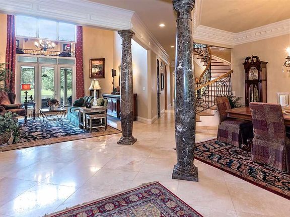 Situated on a .80 acre private, golf course lot in Sologne Circle, custom built home by Rick Ferguson. This home has it all & is perfect for entertaining/creating family memories. Custom features throughout. 2 BRs on first floor w/large closets & en-suite baths for all bedrooms, formal living room, hearth room, safe room, elevator, media room, exercise room, 4 car garage, chef's kitchen, balcony, outdoor patio leads out to the picture perfect pool with the golf course backdrop. Luxury living at its finest.