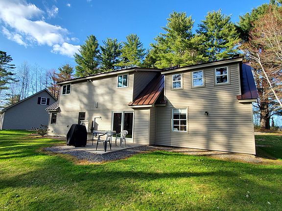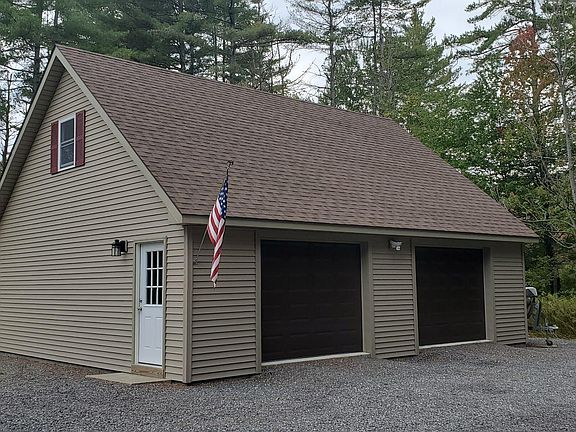 This beautiful secluded newly renovated home sits on a cove on Salmon Lake in the Belgrade Lakes Region. The property has had extensive renovations and upgrades in the recent past. Many of the wall coverings, flooring, ceilings, chimney wrap, kitchen upgrades, bathroom upgrades. In 2019 a new 3 bedroom septic system was installed. This home is move in ready. The first floor consist of an entry, a large hickory kitchen with granite counters and stainless steel appliances, Dining area w/sliding doors to the patio, a full bath and a living room. The second floor consist of three nice sized bedrooms with closets and another full bath. The glass placement affords brilliant natural light throughout the home. The back patio off the dinning area offers a place to relax and barbecue on those warm summer days. The dock leading to the water from the back lawn gives easy access to the entire Salmon Lake and provides a sheltered spot in the finger shaped cove for watercraft. The waterfront is shallow at the shore but the dock extends to deep enough water to accommodate small to medium sized watercraft. The horseshoe driveway and parking area are all covered with crushed stone. The detached 28X32 garage was also recently added. It is all 2X6 construction with attic trusses and a 12X32 room upstairs. There is a generator hookup in the garage that will feed the house if the grid is down. The garage also has a 6X20 insulated room currently being used as a shop. Schedule a visit today to this rare find on the shore of Salmon Lake. Sign on the property.