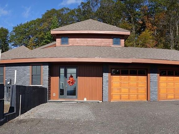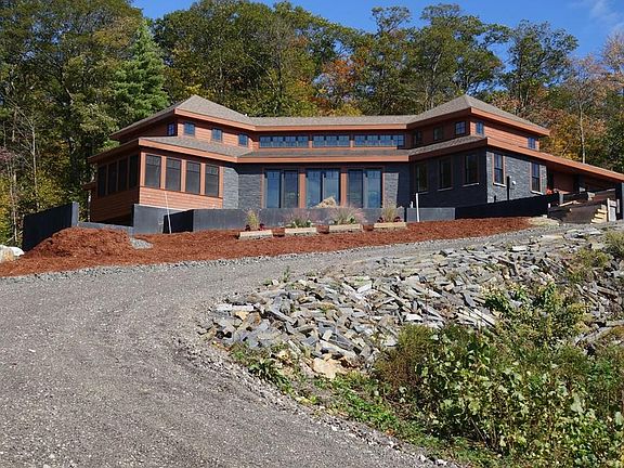 Quality, design & location! A one of a kind, architect designed Contemporary will impress on many levels. This distinctive four bedroom, four bath home is positioned perfectly on the top of a hill to maximize solar potential and privacy. The stately drive welcomes you to this stunning home with three car garage, stone and cedar exterior, blue stone walk way. The design and quality featured throughout are vaulted ceilings, banks of Pella windows and doors, open floor plan with Acacia flooring, birch ceiling, excellent cook's kitchen with Quartz counters, maple cabinetry and a huge kitchen island. Mud room and laundry and first floor master suite complete the first level. The second level enjoys two generous bedrooms with baths positioned between a bridge of windows, all with sustainable bamboo flooring. The family room, yet to be completed, bedroom and bath with private entry comprise the lower level. Breathtaking 200 degree panoramic views of the southern valley are unsurpassed!