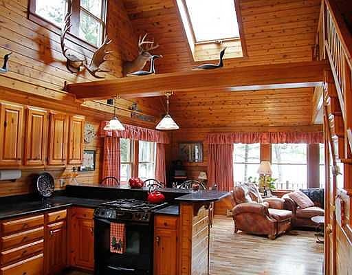 Sprawling 1.4 acre getaway w/bunk house on Raymond Pond with 300 feet of water frontage, dock and great westerly views. Log home with 3 bedrooms, screened porch, birch floors, kitchen w/red cedar cabinets, breakfast bar and granite counters.