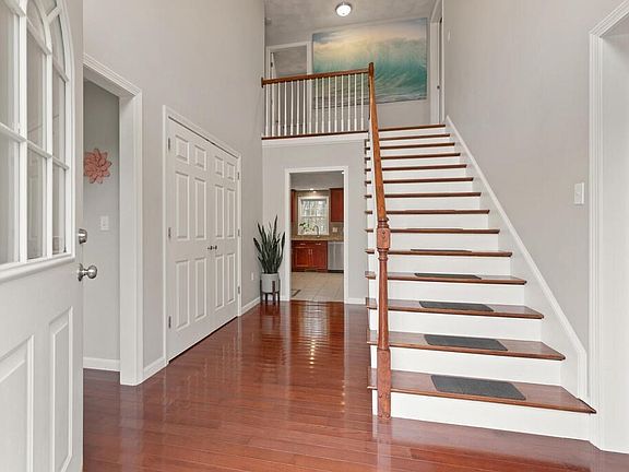 The search is over! This beautiful 2014 Colonial in a quiet circle subdivision with lush lawns and tree lined streets is waiting for you. This 3 Bed 2.5 Bath home boasts hardwood floors and upgraded finishes throughout. Find yourself enjoying the gas fireplace under 13 foot ceilings in the great room, or whipping up your favorite dish in the Chef’s kitchen with solid wood cabinets, granite counters and Bosch appliances (including double ovens and a wine fridge). This well-designed floorplan creates ideal flow for entertaining or daily living. French doors lead out to a 14x28 composite deck with hot tub, perfect for chilly winter nights or your summer BBQ. The primary suite includes a walk in closet and spa like bath with oversized custom shower and jetted tub. The unfinished walkout basement leads to a private wooded area for guaranteed privacy. A Rainbird irrigation system keeps the yard lush and green. Great location, 10 min access to Attleboro commuter rail station.