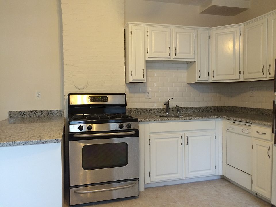 This well located oversized 2BR/1BA penthouse duplex features a sunny corner exposure. The large light-filled living room with marble mantel and four windows opens to a spacious dining room/office. The living space flows nicely into a beautiful eat-in kitchen, offering white cabinetry, granite countertops, a stainless gas range, and peninsula with bar seating. A generous master bedroom with walk-in closet and pumpkin pine floors and ample second bedroom make up the upper level. The full bathroom features a white vanity, bead board accents, a bathtub, and tile floor. Additional amenities include: dedicated laundry, basement storage, an area for grilling in the summer months, and close proximity to town center and MBTA. Tenant to pay gas, electric, and cable/internet. Fee equal to one months rent from incoming tenant.