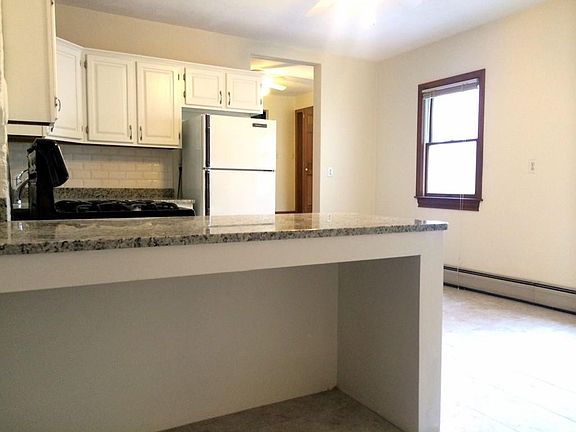 This well located, oversized 2BR/1BA penthouse duplex features a sunny corner exposure. The large light-filled living room with marble mantel and four windows opens to a spacious dining room/office. The living space flows nicely into a beautiful eat-in kitchen offering white cabinetry, granite countertops, subway tile backsplash, a stainless gas range, and peninsula with bar seating. A generous master bedroom with walk-in closet and pumpkin pine floors and ample second bedroom make up the upper level. The full bathroom features a white vanity, bead board accents, a bathtub, and tile floor. Additional amenities include: dedicated laundry, basement storage, an area for grilling in the summer months, and close proximity to town center and MBTA.