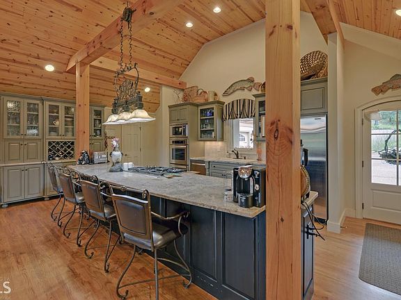 "Wings Over Rabun"is a special home that sits above Lake Rabun ! It features a gorgeous, renovated open floor-plan with magnificent views that can be enjoyed on the large main level deck or from the beautiful gardens on the Terrace Level. The open family room has vaulted ceilings and an inviting stone fireplace with windows galore to relish the lake views. The large master suite is on the main level and has an office space and his and hers closets. There is an additional bedroom on the main level with an en-suite bath. The Terrace level has an additional sitting area with a mini bar.. There are 2 bedrooms (one is currently set up as an office) with en-suite baths and a third bedroom with a hall bath on the Terrace Level as well. The stone terrace is surrounded by lovely gardens offering a peaceful respite. This home is equipped with a generator, a two car garage with storage above, a separate work shed, new high speed heat pump, deep well, and 11 zone underground sprinkler system. There is a plenty of driveway parking and a covered golf cart parking area. You can access the beautifully renovated boathouse by stairs or you can travel by golf cart. There is additional parking at the boathouse as well. The boathouse is well equipped with a refrigerator and plenty of cabinets for storage- you could truly spend the whole day there while enjoying 200' of lake frontage! This home is conveniently located off of Lake Rabun Rd and only 1.5 miles from Halls Boathouse. "Wings Over Rabun" is truly special- come see for yourself!