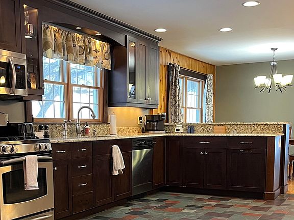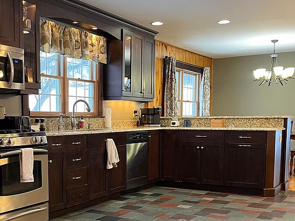 Charming Derby Line Home with Mountain Views - Located in a quiet neighborhood, this inviting Derby Line property features mountain views and stunning sunsets. The home is located near Derby Line Elementary School and the renowned Haskell Library and Opera House. The home combines convenience with small-town charm. The home is situated on a 1.12 acre and is perfect for families and hobbyists. The spacious lot is ideal for gardening. The home boasts a large kitchen with custom cabinets, granite countertops, stainless steel appliances and a breakfast bar. It provides a nice open space for the dining area, sitting room and sunroom. The remodeled family room features ample space and a cozy pellet stove. Another living room, also with a pellet stove, greets you as you enter through the mudroom and attached garage. The main floor also includes a half bath and access to a sprawling back deck, perfect for entertaining. Upstairs there are three bedrooms, a newly updated full bathroom and a primary bedroom with it's own 3/4 bath featuring a tiled shower. Additional highlights include: solar panels (leased with SunRun) for energy efficiency; a new boiler, updated hot water tank, and more. Those interested in expanding the lot size, may also be interested in purchasing the vacant and adjacent 0.68 acre lot.