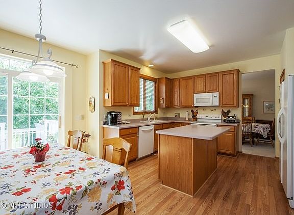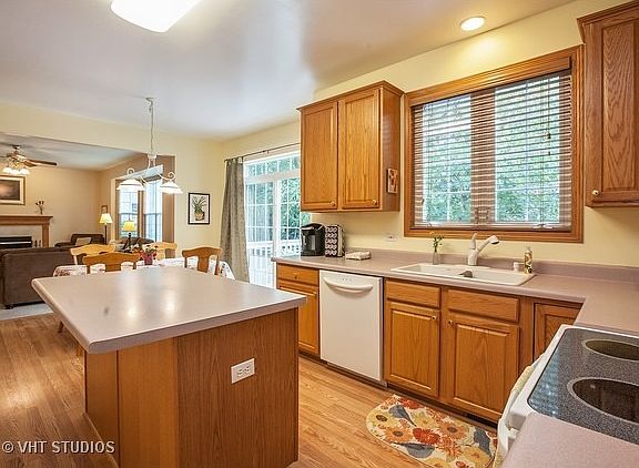 Welcome Home! You will easily fall in love with this 4 bedroom + office and open foyer home located near downtown Crystal Lake. Large eat in kitchen with center island, plenty of cabinets, counter space, wood laminate floor and opens to family room with fireplace and ceiling fan. Master Suite offers large walk in closet and nicely done bath with double vanity, separate shower, whirlpool tub. Other 3 bedrooms are generously sized as well.All windows have low E glass to protect you and your furniture. Full English partially finished basement, first floor laundry and a fully insulated 2.5 car garage. House has deck on sunny side and front porch to sit down and relax in the shade. New hot water heater(2016), humidifier(2014), washer (2015), dryer(2010), microwave(2015), kitchen sink and faucet(2014), garage door(2014), roof(2005), front siding(2005). Close to route 31st, Metra and all conveniences. This house is very clean and ready to move in. Don''t miss it!