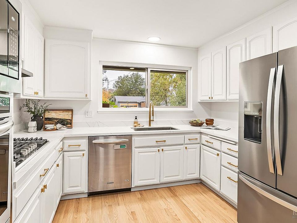 A Beautifully remodeled single-story rancher that perfectly blends modern design with timeless charm. This four-bedroom, two-bathroom home offers 1,595 sq ft of thoughtfully updated living space, situated on a generous 7,040 square-foot lot in one of San Rafael's most sought-after neighborhoods. From the moment you arrive, the home's inviting curb appeal sets the tone, with fresh paint, updated fixtures, and a welcoming entry that immediately conveys warmth and style. Hardwood floors flow seamlessly throughout, creating a cohesive and elegant backdrop for everyday living. The open layout is designed for both comfort and functionality, with natural light enhancing every room. The kitchen has been fully refreshed with brand-new appliances, modern hardware, and stylish finishes, making it a true centerpiece for cooking and entertaining. Adjacent living and dining spaces connect effortlessly to the outdoors, highlighting the home's emphasis on California's indoor-outdoor lifestyle. Be amazed at the oversized backyard that is truly an extension of the living space. A spacious patio provides the perfect setting for al fresco dining, weekend barbecues, or evening gatherings under the stars. Beyond the patio, a lush grass area offers room for play, gardening, or quiet relaxation, while the overall lot size provides ample opportunity for future customization. Whether you envision hosting friends, creating a private retreat, or simply enjoying the outdoors with family, this backyard delivers versatility and charm. Practicality meets style with an attached two-car garage and ample parking, ensuring convenience for modern living. The location further enhances the appeal, with easy access to Highway 101 for commuting, proximity to top-rated schools, and nearby shopping and dining options that make daily errands and weekend outings a breeze. 59 Trellis Drive is more than just a house it's a home designed for connection, comfort, and celebration. Move-in ready and thoughtfully remodeled, this property is an ideal opportunity to enjoy the very best of San Rafael living. Close to Kaiser, Mark Day School, transportation, shops and hiking and biking trails.