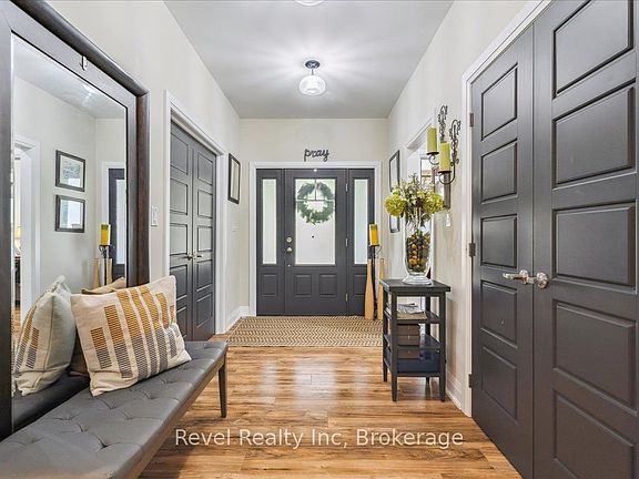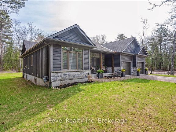 Your Year-Round Georgian Bay Retreat Awaits! Discover your perfect home in a peaceful, natural setting just a short stroll from the crystal-clear shores of Georgian Bay. Enjoy the best of both worlds-tranquil living surrounded by nature, yet minutes from high-speed internet, local delis, cozy restaurants, and just 20 minutes to major retailers, theatres, museums, and historic attractions. This nearly new, modern ranch bungalow offers over 2,000 sq. ft. of stylish main-floor living, featuring 3 spacious bedrooms, 2 full bathrooms, and a bright full-height basement ready for your finishing touch, complete with a rough-in for a third bath. Designed for comfort, the home includes in-floor radiant heating on both levels, a cozy gas fireplace in the great room, and in-ceiling air conditioning to keep things cool on warm summer days-all naturally shaded by mature trees. Step outside to enjoy the beautifully landscaped yard with a full irrigation system and a private wooded backdrop, ideal for bonfires or relaxing evenings on the covered deck. The open-concept kitchen is perfect for entertaining, showcasing a large island, granite countertops, and high-end appliances. A double-car garage with inside entry leads to a convenient main-floor laundry room for everyday ease. If you've been dreaming of a lifestyle that blends nature, comfort, and modern convenience, this is it. Schedule your viewing today