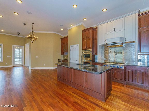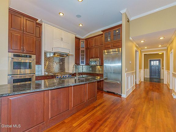 Absolutely amazing, upscale home. 14' ceiling in an outstanding Great Room. Brazilian Cherry & Teakwood floors & woodwork throughout. Spacious bright rooms. Gourmet kitchen w/high-end appliances & cherry cabinets, delight & make any chef proud. Astonishing finished basement for entertaining all ages which includes sound-proof movie theatre, concession area, cherry wood bar, great room, full kitchen, and large bedroom w/full tiled bath. This home is drop dead gorgeous! Low utility costs (tenant's responsibility) attribute to this masterfully built home. Quick commute to all major highways, 15 min to Albany.
