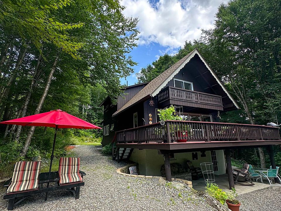 This renovated and well maintained Alpine Haven chalet is situated on .75 private wooded acres surrounded by an abundance of greenery & perennials. Located at the end of Van De Kamer Rd in a Private Community with swimming pool, clay tennis court, pickleball, volleyball, disc golf and easy access to the hiking trails that meander through out the woods right outside your door. Only minutes to Jay Peak Resort with Alpine & Nordic skiing, state of the art waterpark, hockey arena, climbing center, spa and numerous restaurants, plus one of the best golf courses in Vermont. Also a mere 5 miles to Town of Montgomery with grocery store, sports shops, restaurants and bars. This chalet allows one to vacation all year with it being a winter wonderland, enjoying the fall colors in Autumn, taking in the Summer music festivals both at Jay and Montgomery or touring the area for farmers markets or even visiting Canada which is only 15 miles away. Many updates during the ownership of this chalet to include expanded kitchen, bathrooms, flooring and more. Home is being sold fully furnished less some personal items.