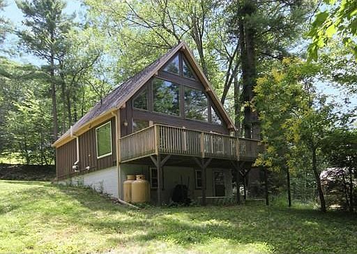 Many newer updates including propane heating system, updated electric, many new windows and doors, newer roof and gutters . Open floor plan with sliders to deck with beautiful views of Hamilton Reservoir in the winter !