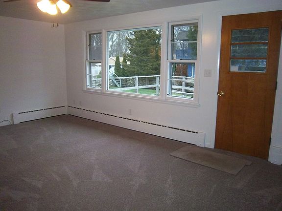 Well maintained 3 bedroom, 1 bath ranch style home. Full unfinished walk out basement with washer and dryer hookups. One car attached garage. Applianced eat in kitchen. Tenant responsible for utilities (oil heat). Situated on quaint dead end street. No pets, no inside smokers, year lease. Application required. Tenant responsible for utilities. Includes lawn maintenance.