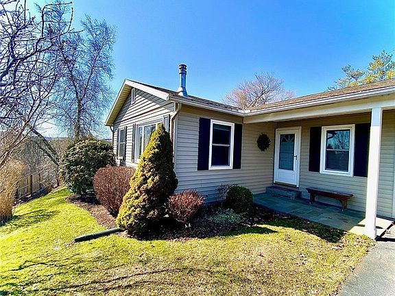 This ranch style home has lots of wonderful features including: a newly remodeled eat-in kitchen complete with granite countertops, new cabinetry, tile back splash and light fixtures, alongside energy saving appliances. An inviting living space with hardwood floors, large light filling windows and a warming pellet stove for the Upstate New York winters! There are 3 bedrooms, a full bathroom with radiant floor heating and a half bathroom. The basement area includes a newly finished office room and a workshop area that is great for any artist or hobbyist, plus plenty of storage space. Newly installed sliding glass doors lead you to the back deck to enjoy distant valley views. A country setting but only a short drive to Ithaca and the Finger Lakes area! A must see move-in ready home!