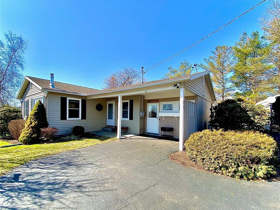 This ranch style home has lots of wonderful features including: a newly remodeled eat-in kitchen complete with granite countertops, new cabinetry, tile back splash and light fixtures, alongside energy saving appliances. An inviting living space with hardwood floors, large light filling windows and a warming pellet stove for the Upstate New York winters! There are 3 bedrooms, a full bathroom with radiant floor heating and a half bathroom. The basement area includes a newly finished office room and a workshop area that is great for any artist or hobbyist, plus plenty of storage space. Newly installed sliding glass doors lead you to the back deck to enjoy distant valley views. A country setting but only a short drive to Ithaca and the Finger Lakes area! A must see move-in ready home!