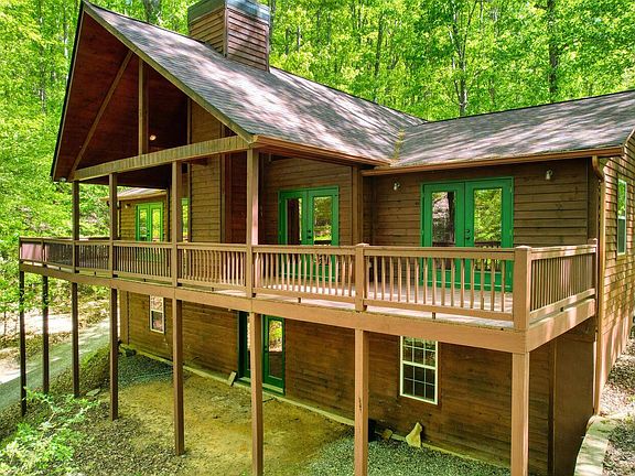 HAVE YOU BINGED WATCHED TOO MANY SOCIAL MEDIA VIDEOS OF MOUNTAIN CABINS & NOW YOU WANT ONE OF YOUR OWN? You found it! You are greeted by this prow-front lodge surrounded by native vegetation w/ seasonal mountain views, sitting on 2 lots totaling 2.62 acres. Upon entering the lodge, you're surrounded by large windows & french doors for tons of natural light & a wide-open great room-style living space design. Features include a wood-stacked stone fireplace, cathedral ceilings, an all-wood interior, & spacious kitchen. The owner's suite is conveniently located on the main level & ensuite with a dual vanity, jetted tub & separate shower. A full, unfinished basement is ready for you to expand your living space! Four sets of French doors lead you out to a large deck that has a nice covered & uncovered area for you to enjoy the peacefulness & wildlife that the end of the road privacy this lodge offers. HOME INVENTORY IS STILL LOW! IF YOU WAIT, THIS ONE WILL BE GONE--