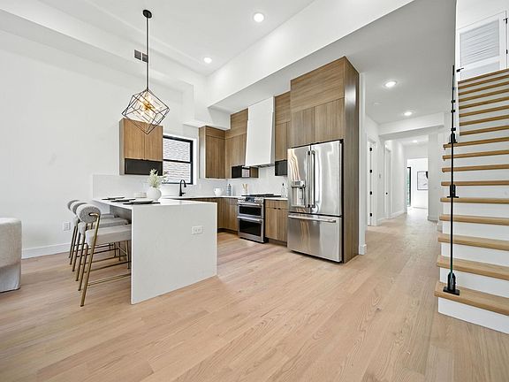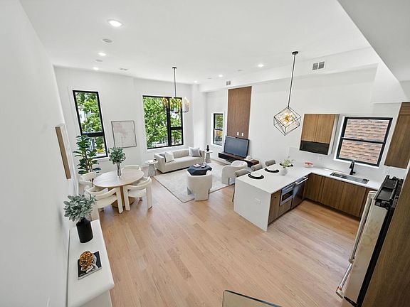 Welcome to 59 Waverly Street Unit 2—a brand new 3-bedroom, 2-bathroom duplex by Medna Developers, offering 1,400 sq ft of thoughtfully designed living space and side by side garage parking in Jersey City Heights. The main floor provides an open concept living area with 12-ft ceilings and oversized Andersen windows that fill the space with natural light. The chef’s kitchen features premium GE Cafe appliances, waterfall quartz countertops, and custom wood and glass cabinetry.