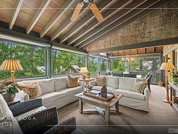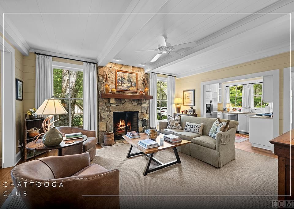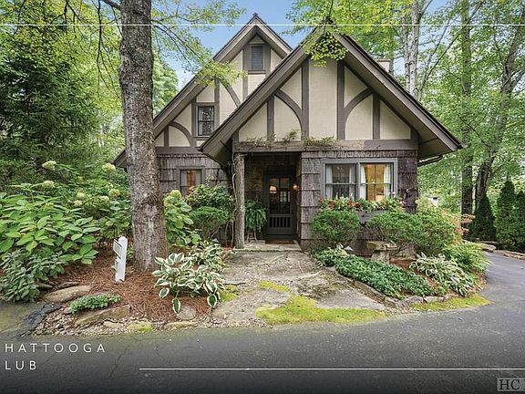 Welcome to this exceptional high-end mountain cottage, quietly situated in a lush, scenic setting in the heart of the prestigious Chattooga Club. This home was designed by renowned architect Mark Paulin, who designed The Chattooga Club, for a luxurious, carefree, and artful lifestyle experience. Built with architectural integrity and character, the house boasts natural materials and quality finishes. The exterior features upscale poplar bark siding, natural timber columns, and a cedar shake roof, and the interior includes refined nickel gap wood walls and ceilings throughout. The elegant sun-filled floorplan presents nicely proportioned rooms, including three bedrooms and three full bathrooms.The main level provides elevated views of the mountain setting through tall windows and includes a beautiful living and dining room with a stone fireplace, fitted kitchen, built-in bar, and lovely primary suite. French doors open from the dining room onto a comfortable Carolina Room with scenic views, creating a picturesque setting for entertaining. Two beautiful guest rooms on the second floor include ensuite bathrooms and walk-in closets. The home is set amidst flowering perennials and mature trees, with window boxes adding to its charm. Natural stone steps lead down to a small, private, fenced, beautiful lawn area designed by Mary T. Dial and professionally maintained by the HOA.The Chattooga Club is known for its luxury experience and culinary excellence. This home is ideally situated adjacent to the resort-style amenities. Gather with friends at the pavilion restaurant and indulge in the state-of-the-art fitness center and spa. Enjoy the world-class croquet lawn, the elegant pool, clay tennis courts, pickleball courts, and the artful cutting garden. Rejoice in the tree-canopied, moss-lined paved lanes, canoe on the private lake, and enjoy awe-inspiring sunsets at Mac's View. Membership by invitation only. This home is offered move-in-ready and partially furnished.