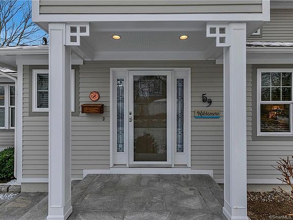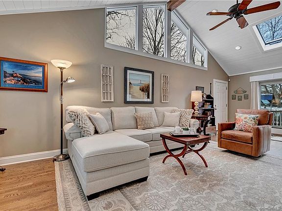 Wildemere Beach Beauty! You will fall in love with this fabulous 2/3 Bedroom 2 Bath completely renovated and expanded Contemporary colonial that's just 250 yards to a gorgeous sandy neighborhood beach. A stone front walkway and pretty covered porch set the stage for welcoming you into the entertainment friendly open floor plan that features an expansive Living Room with soaring cathedral ceiling, a stone front, temperature controlled gas fireplace, plenty of room for a dining table, and sliders to a lovely mahogany deck; a nicely designed chef friendly kitchen is accented with shaker style cabinets, granite counter tops, and stainless appliances expands to a more formal Dining Room. A main level bedroom and smartly updated full bath. Completing the main level is an office/third bedroom. A second floor Master showcases a generously sized bedroom with tray ceiling, full bath with custom tile shower, and a walk-in closet. Room for expansion over the open foyer area. Hardwood flooring in all rooms on the main level except the kitchen and bath. Saving the best for last is a sweet enclosed porch complete with cathedral ceiling, electricity and bracket for flat screen television. Impeccably landscaped corner lot includes an entertaining area with firepit, decorative stone wall, and garden areas. A short stroll to Walnut Beach creamery and boardwalk. A short ride to Metro North train and downtown Milford. The gem you've been waiting for!