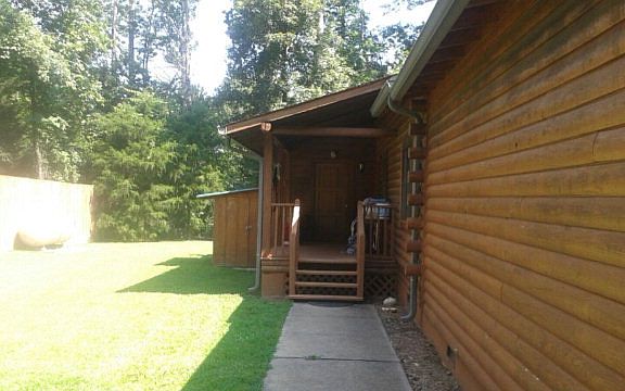 1.3 Acres immaculate city lot in Woods Estates. Custom Built Log home with first floor master and 3 additional bedrooms up stairs.Perfect condition with New Roof and New Heat and Air system. Kitchen has been totally renovated with new granite counter tops. Master Suite features jetted tub and separate walk in shower. Gas Log Fireplace built from antique sand brick, custom wood blinds thru out. Out building features work shop with power. 50 amp power hook up as well for your RV!!!!!! This home is move in condition .