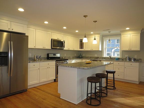 BRAND NEW TOWN HOMES OVERLOOKING LOWELL PLAYGROUND BY MASTER BUILDER NEAR CUSHING SQUARE / VICTORY FIELD. SUNDRENCED 6 rm 3 bdrm 2.5 bath Town Home features a delightful open 1st flr lvrm-dnrm-kitch combo. The Ultra mod island kitch with white shaker-style cabinets has granite counters and stainless steel appliances. The lvrm & dnrm feature terrific detail with chair railing, wainscoting,Gas fireplace with built-in shelves, oak flrs and a 1/2 bath complete the level. The 2nd flr offers a master bedrm with walk in closet, master bath with tiled shower and double vanity, and 2 other good sized bdrms with large closets, Hall bath with tiled tub & shower. Oak flrs throughout except upstairs tiled baths.. 2 Zone Gas heat/ CA.. Large unfin LL for expansion. Exlusive use front yard & part of the Lovely private back yard. Exclusive 2 car driveway. Located on a quiet side street near public transport,major highway access,shops,stores,restaurants and everything Watertown has to offer.