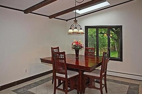 Outstanding Home!! This beautiful split level in Penfield offers open and airy floor plan with volume ceilings and skylites. Original wood trim thruout shows quality of craftsmanship and attention to architectural detail. Numerous updates include a newer kitchen and flooring, entry tile flooring and front door, carpeting in living room, roof, paver walkways, koi pond, shed, master bath and more. The rear deck off family room overlooks the most picturesque rear lot with koi pond and incredible landscaping. Family room has full wall brick woodburning fireplace & hardwood flooring. 1st flr office